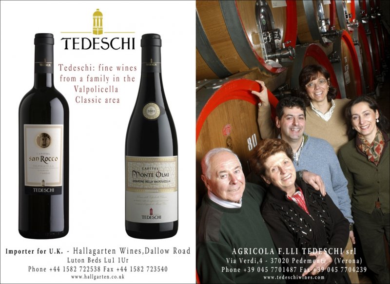 Tedeschit tekevät Valpolicellan alueella viiniä jo viidennessä polvessa perinteitä vaalien. Kaiken aloitti isoisoisä Nicolo vuonna 1824. Tällä hetkellä taloa hoitavat kolmannessa polvessa Silvino ja Renzo ja Sabrina ja Riccardo neljännessä. Tedeschit viljelevät maata Gardajärven itäpuolella ja tarhoja löytyy mm. Valpolicellassa, Valpolicella Classicossa ja Soavessa sekä Bardolinossa. Alueilla he ovat keskittyneet perinteisiin rypälelajikkeisiin. Talon mottona on tehdä viiniä perinteitä kunnioittaen ja uutta teknologiaa hyväksi käyttäen, siten että talon tyyli säilyy ja jokaisella viinillä on oma persoonansa.